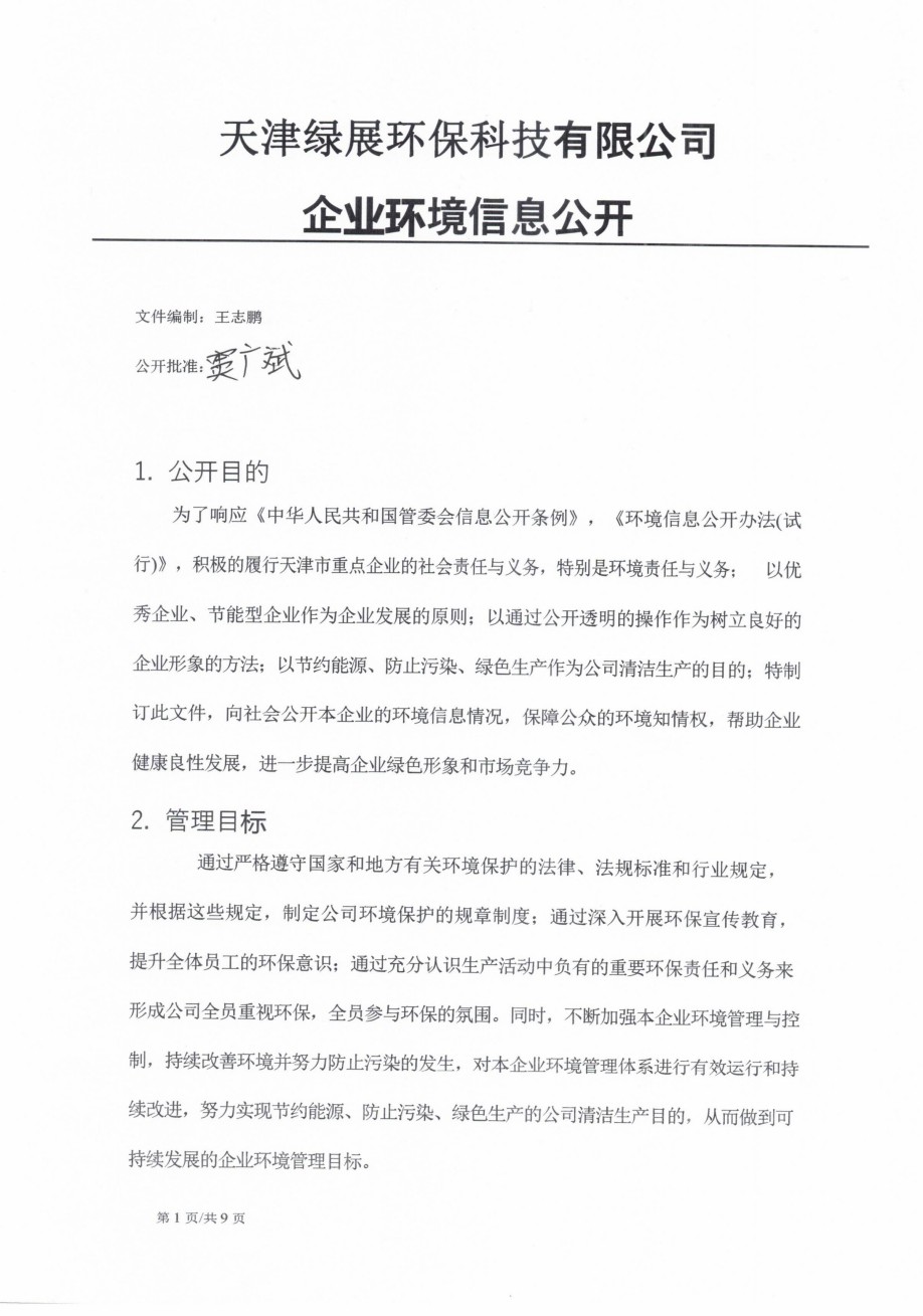 天津綠展環(huán)??萍加邢薰酒髽I(yè)環(huán)境信息公開