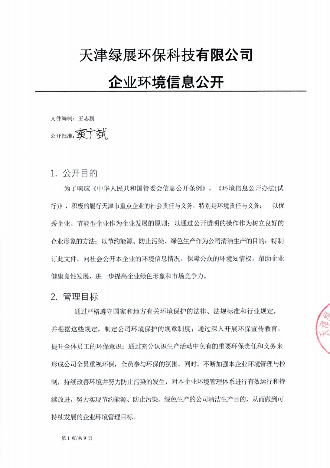 天津綠展環(huán)保科技有限公司企業(yè)環(huán)境信息公開