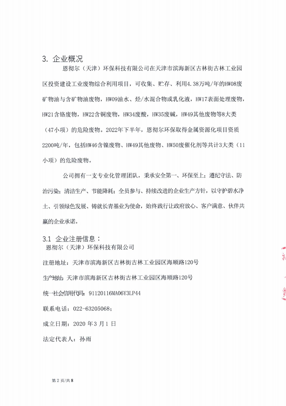 信息公示:恩徹爾(天津)環(huán)??萍加邢薰緮U(kuò)建危廢暫存間項(xiàng)目 竣工環(huán)境保護(hù)驗(yàn)收監(jiān)測(cè)報(bào)告