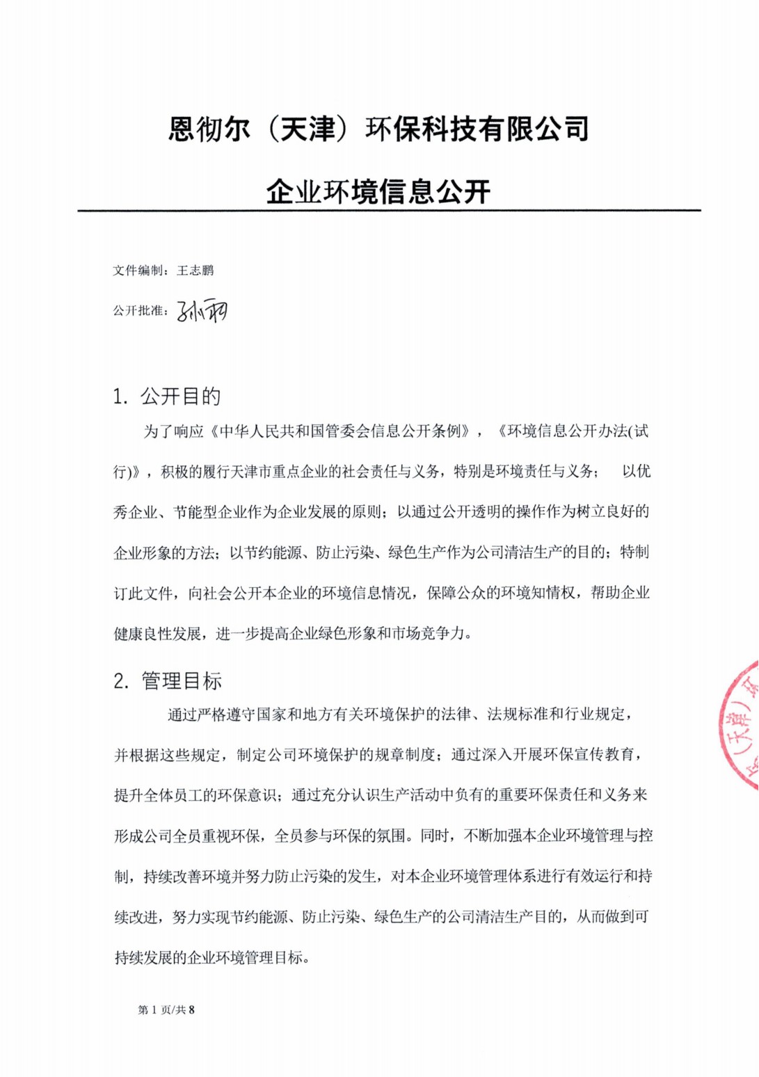 恩徹爾(天津)環(huán)保科技有限公司企業(yè)環(huán)境信息公開(kāi)