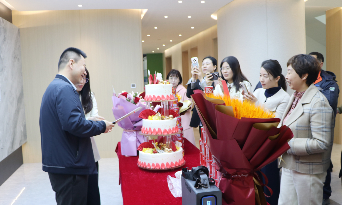 平移完成后,所有人員齊聚行政樓大廳,一場(chǎng)溫馨而歡樂(lè)的切蛋糕儀式在此舉行。公司總經(jīng)理張兆軍發(fā)表致辭,他滿懷激情地表達(dá)了對(duì)新環(huán)境的美好展望,同時(shí)對(duì)全體員工、各支持單位一直以來(lái)的付出與幫助表示衷心感謝。張總的話語(yǔ)充滿力量,讓在場(chǎng)的每一位員工都備受鼓舞。致辭結(jié)束后,領(lǐng)導(dǎo)與員工代表共同切蛋糕,大家臉上洋溢著幸福的笑容,共同分享這份喜悅。